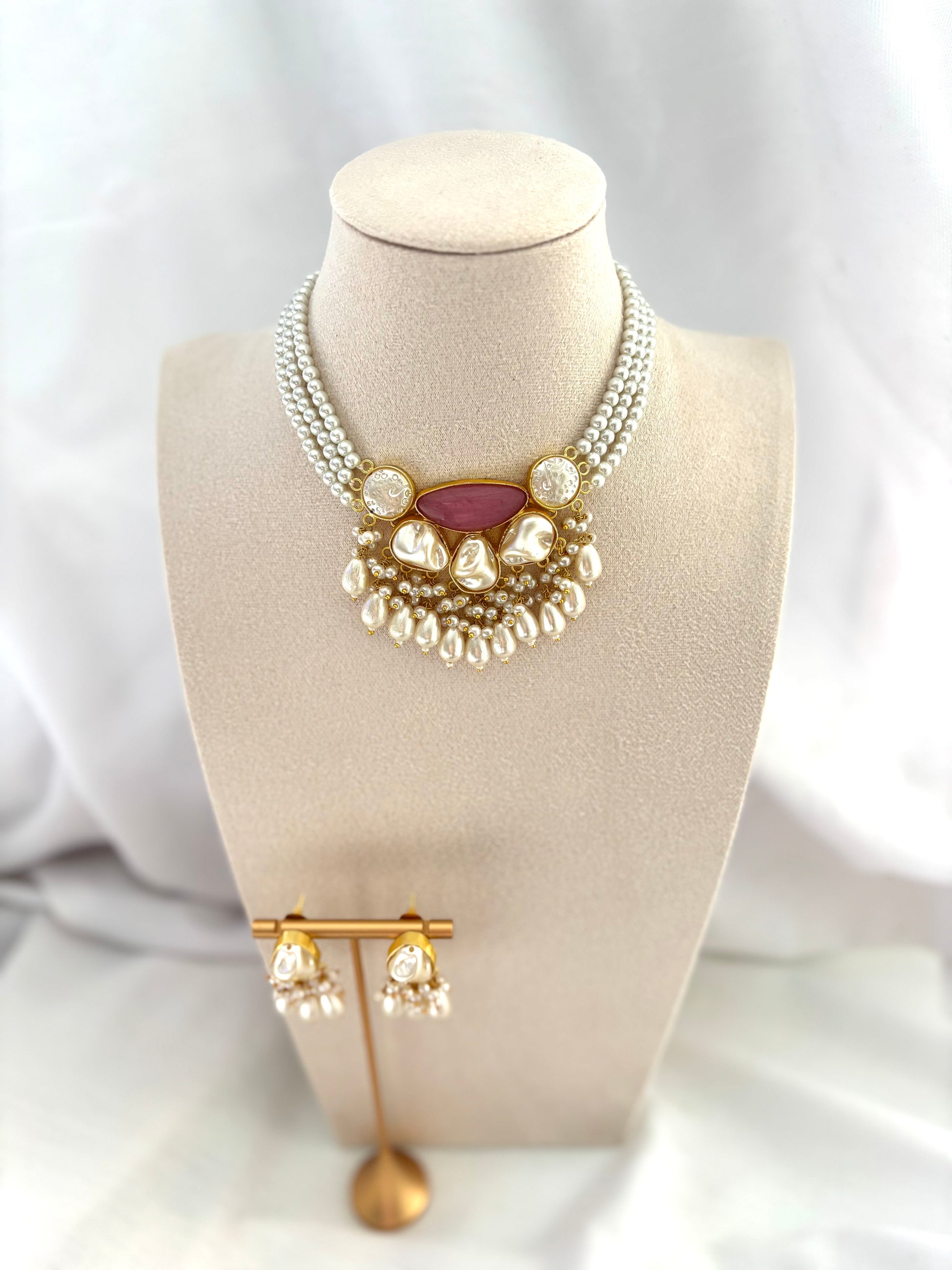 Pink Mother Of Pearl Choker Set | Mother Of Pearl Collection